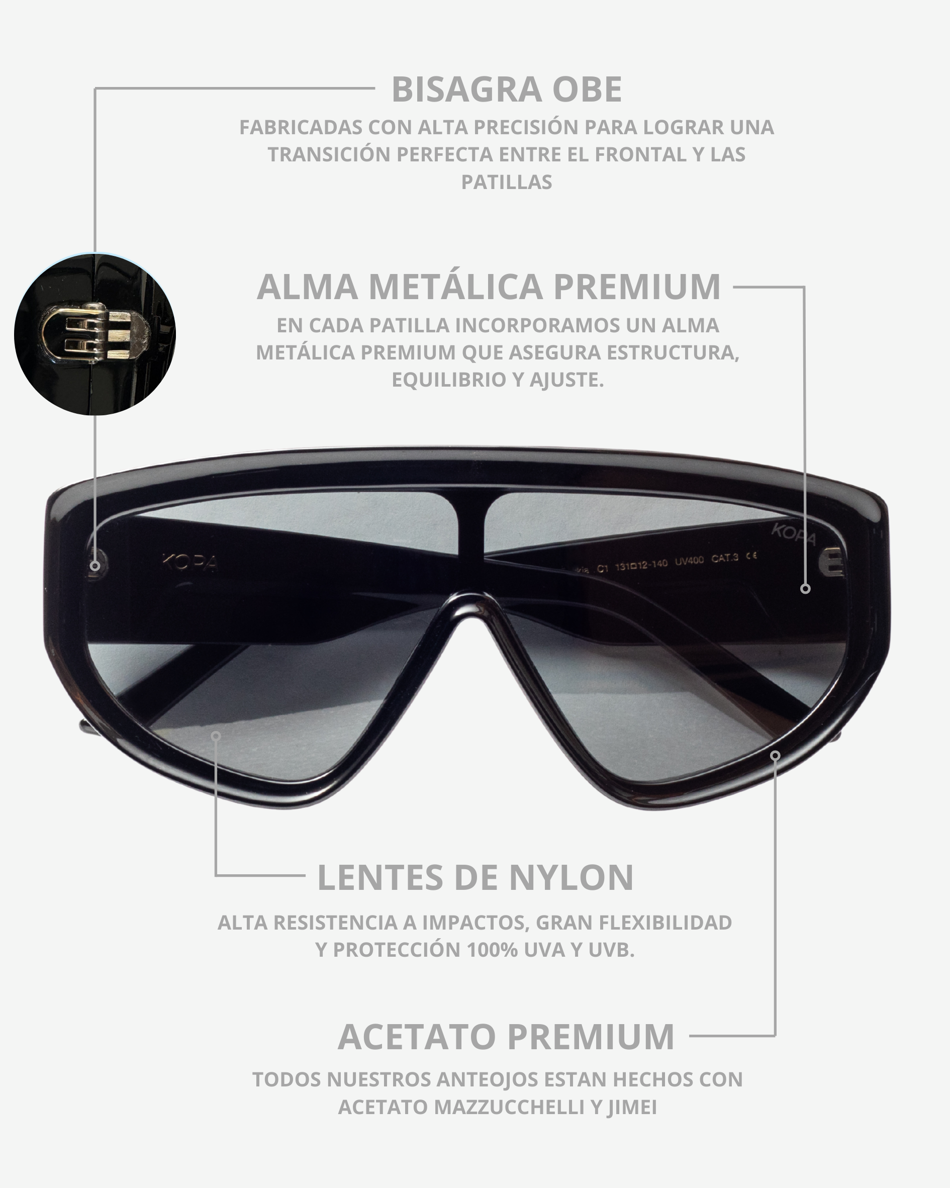 Todos nuestros anteojos están fabricados con certificación europea CE, un estándar que respalda calidad y seguridad para que uses tu KOPA con total tranquilidad.