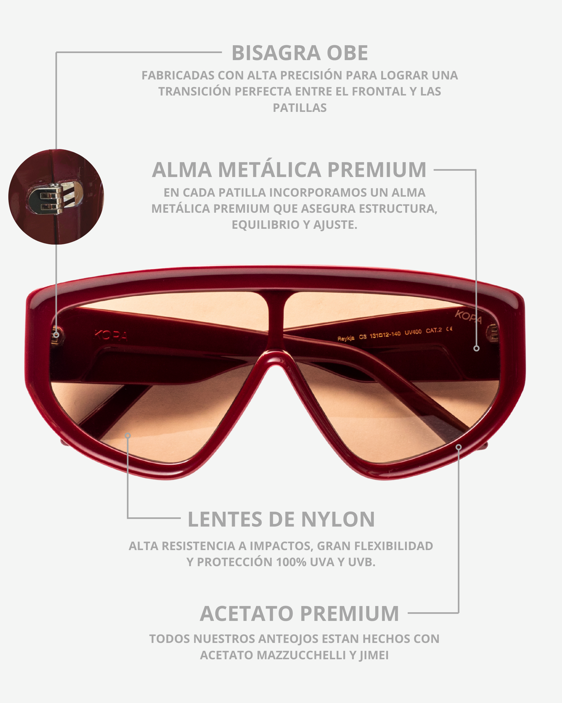 Todos nuestros anteojos están fabricados con certificación europea CE, un estándar que respalda calidad y seguridad para que uses tu KOPA con total tranquilidad.